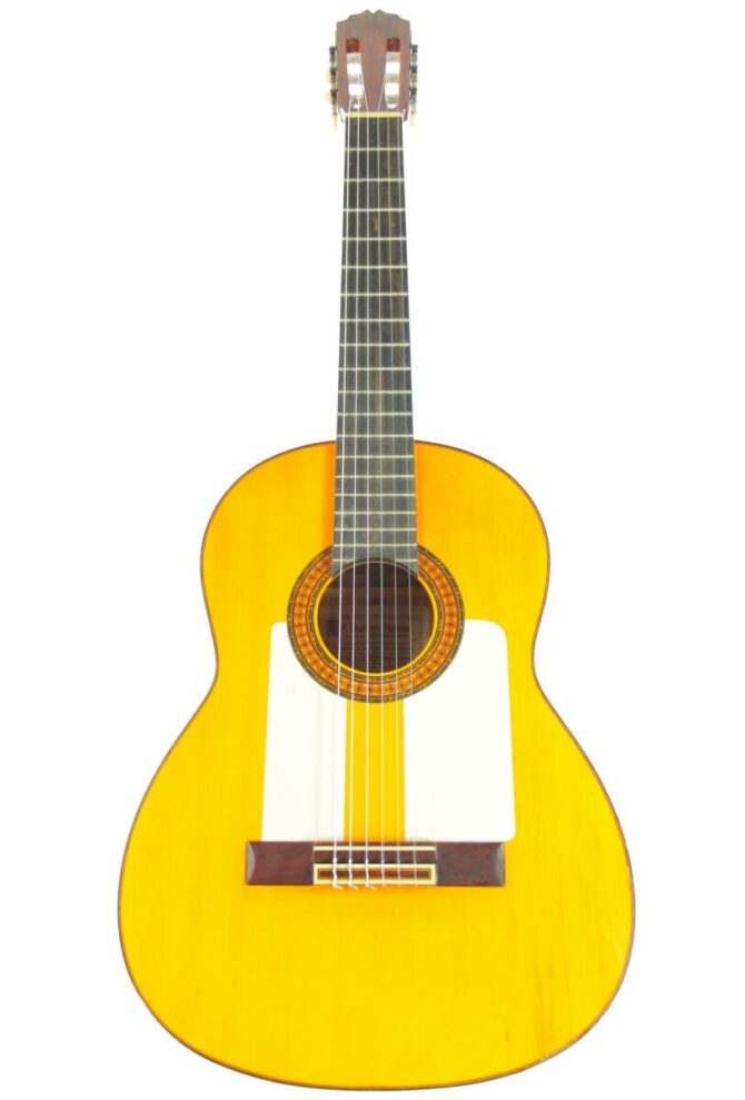 This guitar is a showpiece of the guitar maker’s art with its outstanding workmanship and unique sound. As is typical of his instruments, this guitar is made of master grade woods. The top is made of the best German spruce, the back and sides are made of high quality cypress. The scale lengths is 658 mm and the nut width 52 mm.