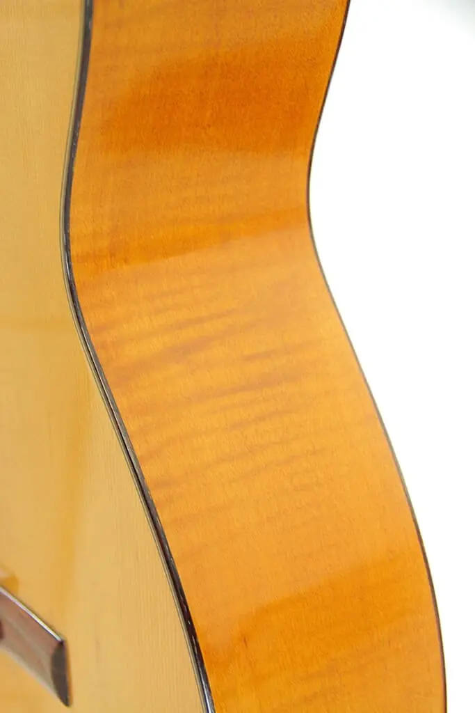 The scale length is 645 mm and the nut width is 50 mm. The top is made of fine spruce, the back and sides of maple. It is supplied with the original case.