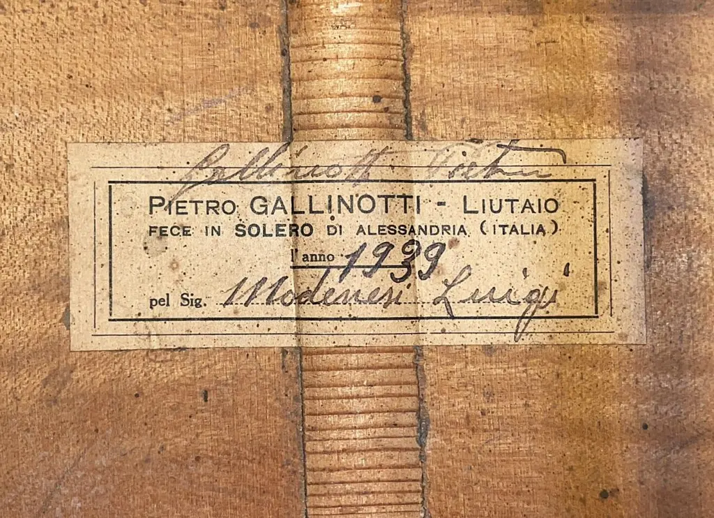 Pietro Gallinotti was born in 1885 and died in 1979 in Solero in Piedmont, Italy. He won medals in Geneva, Rome 1931 and Bologna 1936. He started as a violin maker and gradually concentrated more on guitar making. His work was very precise and he is known for working long hours on his instruments to achieve the best possible result.