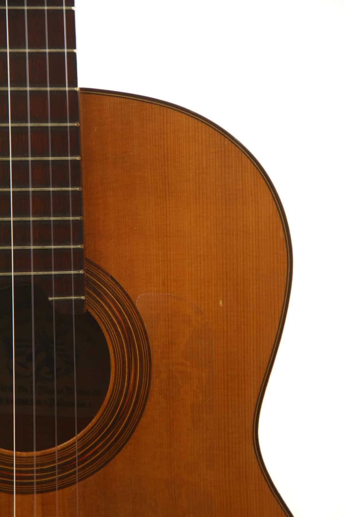 The guitar was built between 1930 and 1940. It has a spruce top and the back and sides are made of the finest cypress wood. The scale length is 650 mm and the nut width 52 mm.