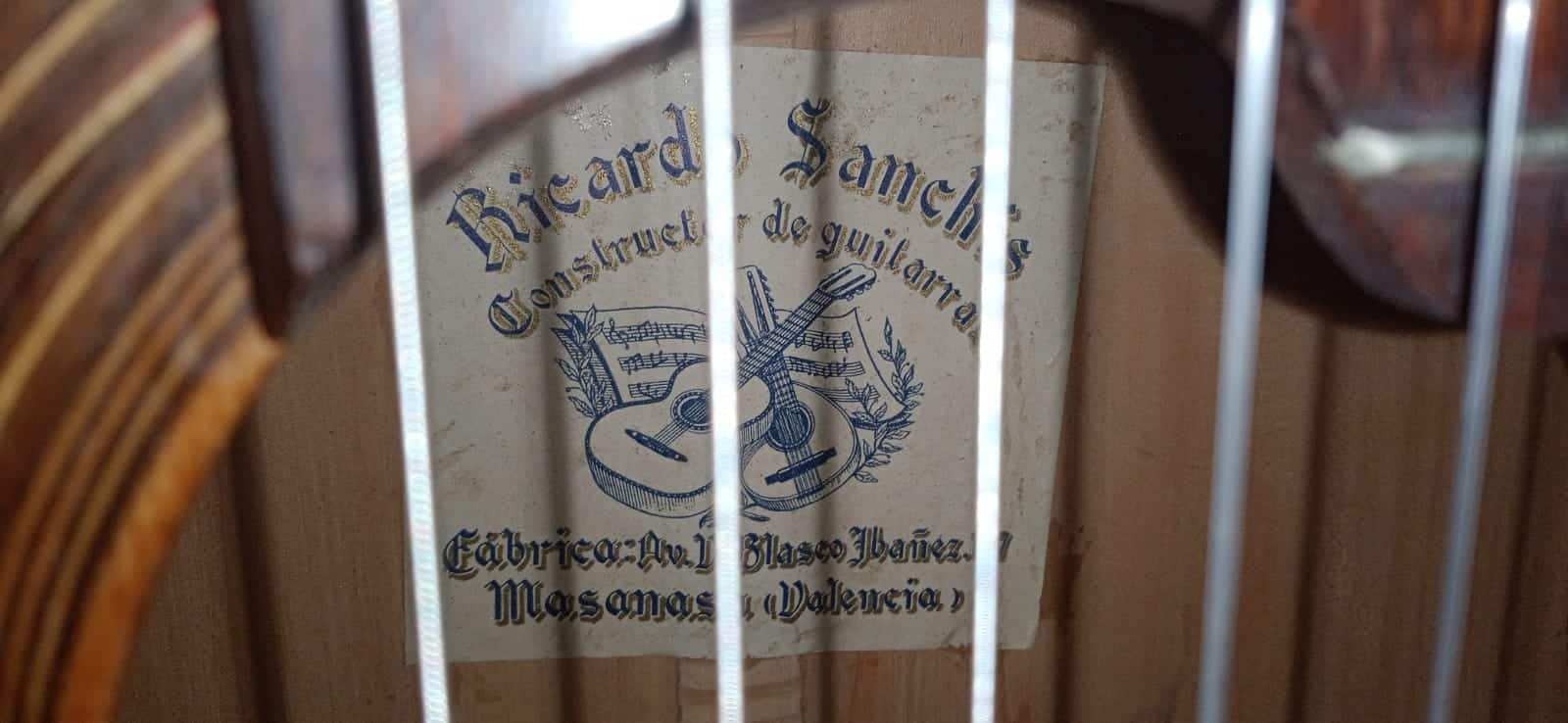 The shop of Ricardo Sanchis in Valencia was founded by Ricardo Sanchis Nacher in 1915. He has worked for guitar makers in Valencia for sometime, went to Madrid where he was befriended by Manuel Ramirez and Domingo Esteso. To perfect his craft, he remained in Madrid working for Domingo Esteso (the founder of todays Hermanos Conde guitars) for three years.