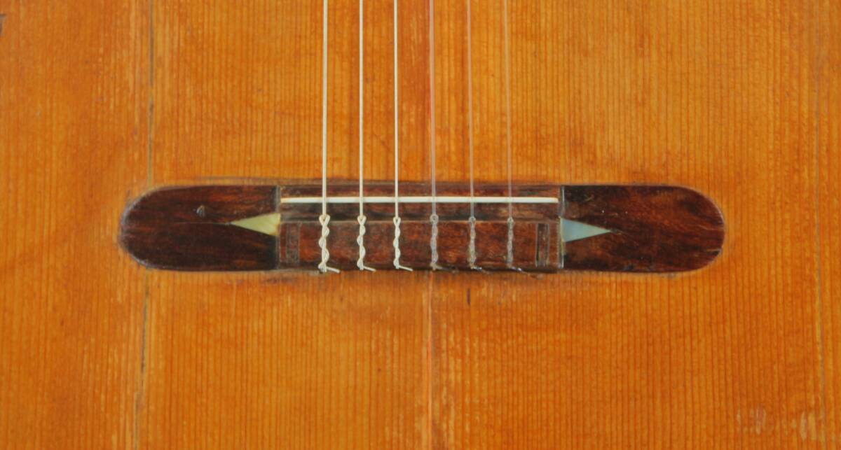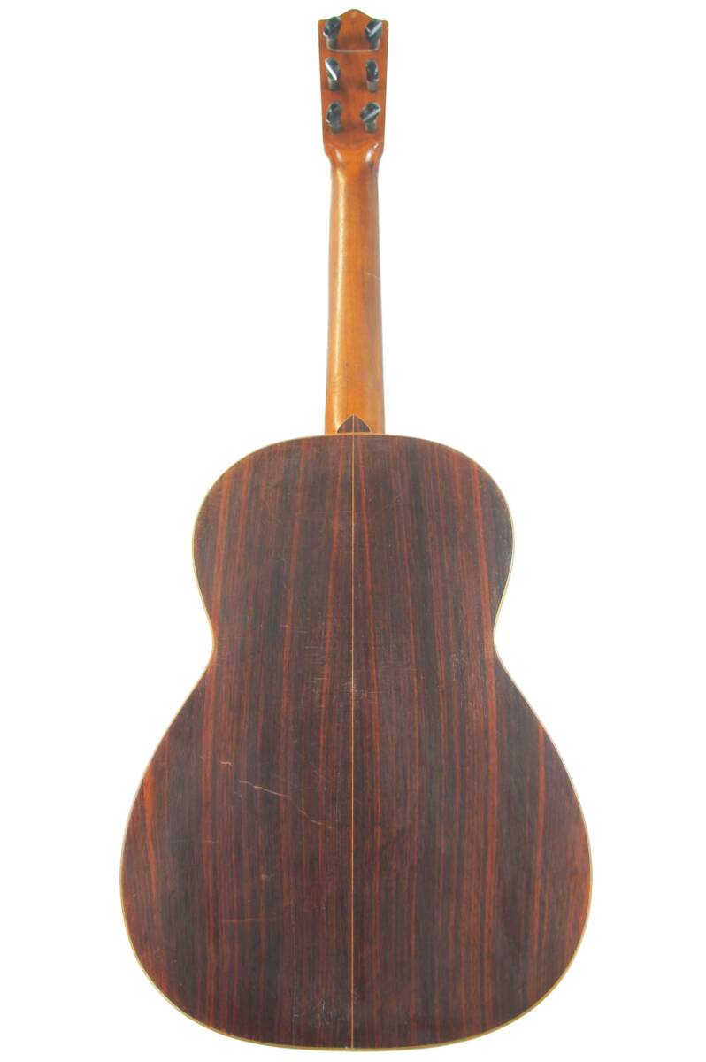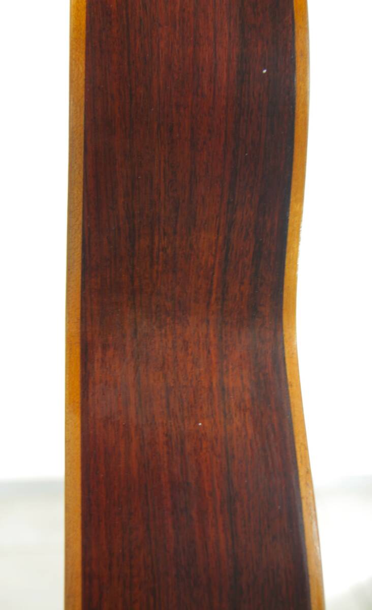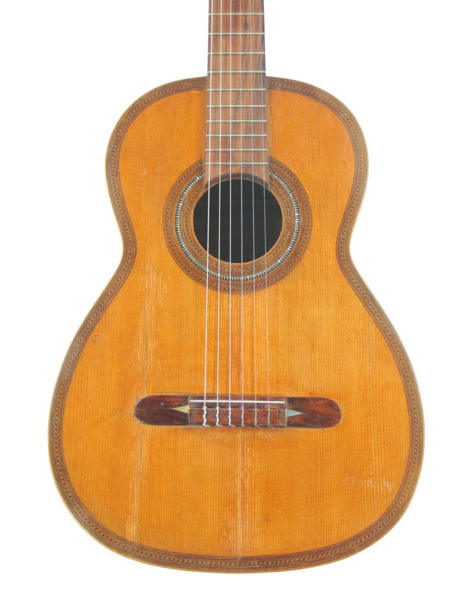 The guitar is in a lightly restored and well playable condition. The scale lenghts is 646 mm and the nut width 50 mm. The top is of fine spruce and the back and sides of very beautiful and high quality rosewood.