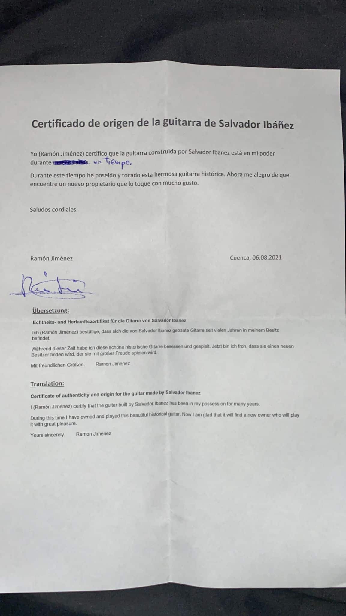Very beautiful historical guitar by the famous Salvador Ibanez, built around 1900. This guitar came from the collection of the famous guitarist Ramon Jimenez (see last picture). A Fantastic looking guitar with an amazing sound!