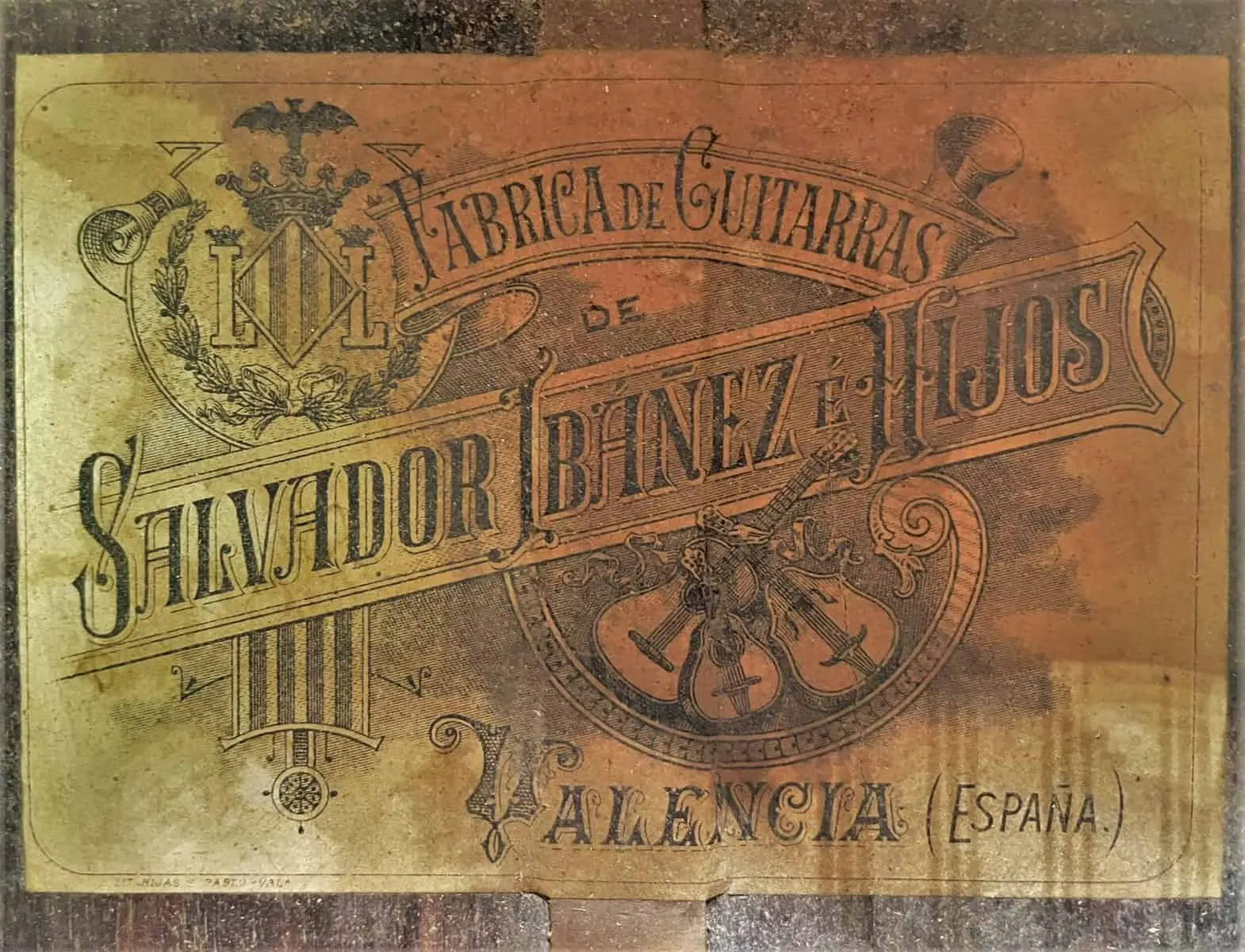 In 1870 he started his own company: Salvador Ibáñez y Albiñara. The company was registered at Calle Cubells. Working in his shop were the ten-year-old José Ibáñez and Magdalena Albiñara y Magraner, from Ollería, Valencia. In 1896 he first appeared in the trade guides at Calle Ruzafa Valencia and from 1898 to 1906 his shop was located at Calle Bajada de San Francisco. Salvador Ibáñez made bandurias, lutes, six and nine-string guitars and also guitars with detachable necks.